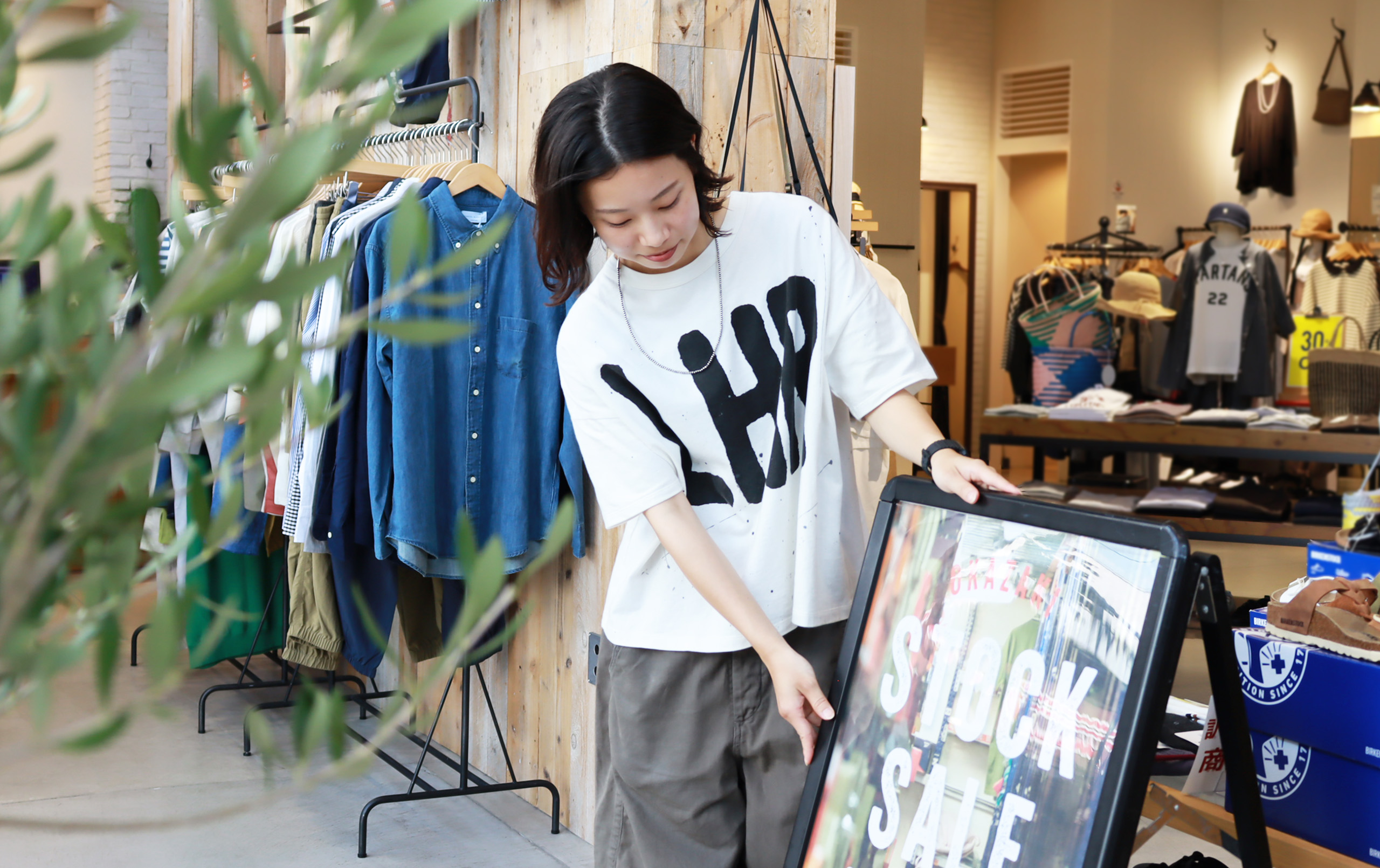 スキル面では、接客で様々なお客様とかかわることで、コミュニケーション能力やニーズに応える力が培われたと思います。もちろん販売員としてのコーディネート力やVMD、売れ筋の分析力も入社時から成長した点として挙げられます。また個人的には、販売促進としてクリエイティブソフトの勉強・実践をしながらデザインのスキルと知識を養っています(成長中です!)